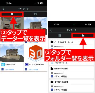 • 一度表示したデータやフォルダはマイデータ画面から表示できます。