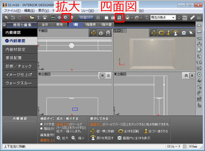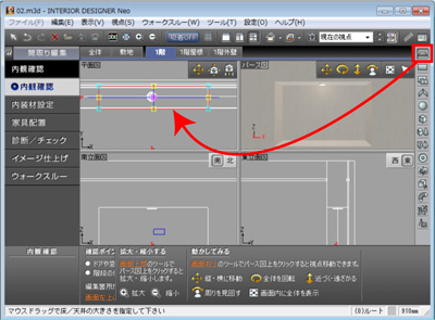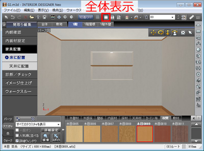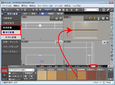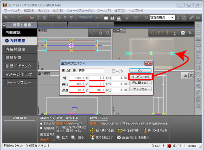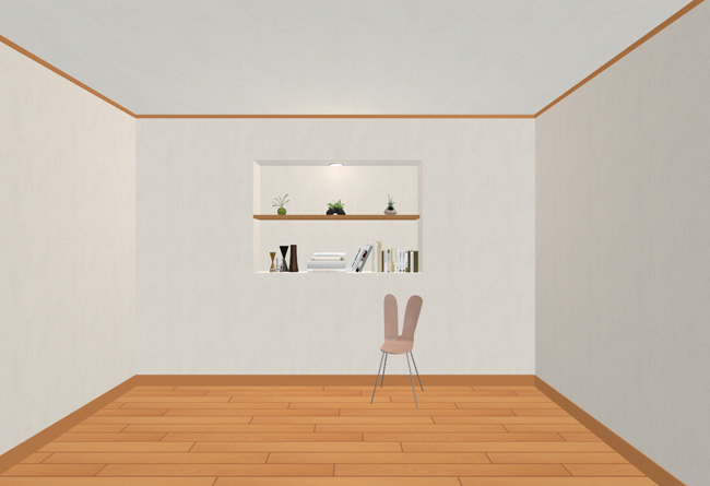 第1回で作成したニッチに棚を付けます。 ニッチ作成後、画面右の「形状作成パレット」の床・天井作成ツールを使って作成します。
