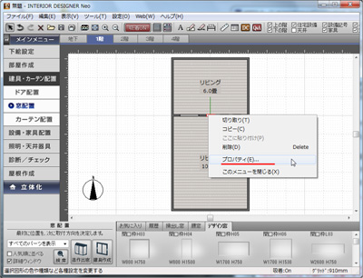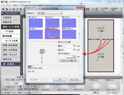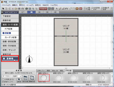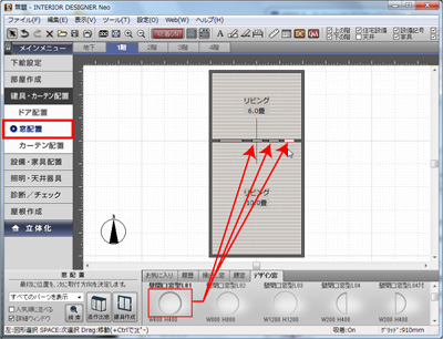 間取り画面のナビから、「窓配置」を選択してパレットから「デザイン窓」の