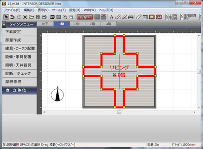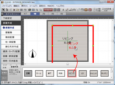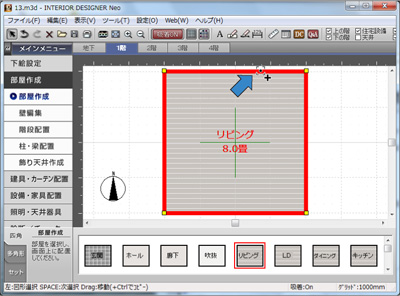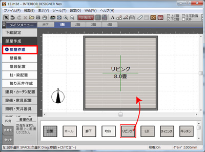 | 01 | 間取り画面のナビから、「部屋作成」を選択し、部屋を配置します。 | ![]() |