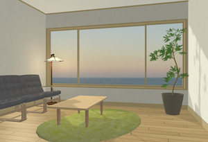 指定された背景に変更されました。「屋根・天井を表示」を選択して終了です。 |