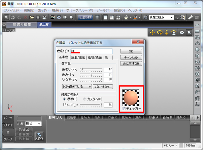 「チェッカー」に作成した色が表示されます。「色名」を入力します。