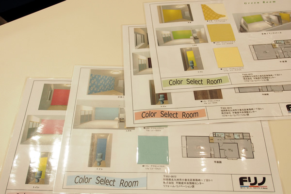 「これは『カラーセレクトルーム』の提案資料なんです。自分の好きな色の壁紙を入居時に選んでいただけるというサービスなんですよ」