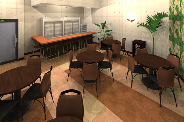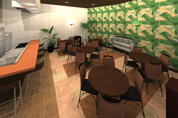 ▼ 店舗のインテリアを様々なアングルのパースで提案