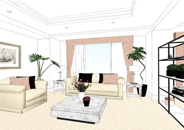 新築マンションの商談会でトータルコーディネートの依頼をいただいた時などでは、パースで提案することがあります。
