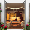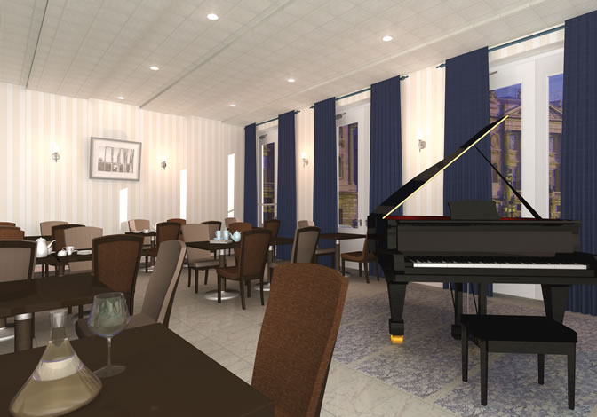 「コ―ブ照明とシャンデリアの組合せの作例」