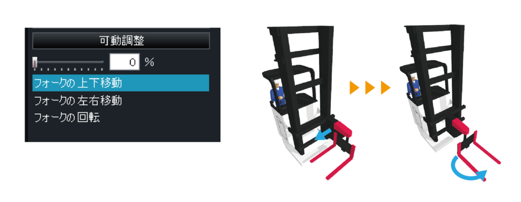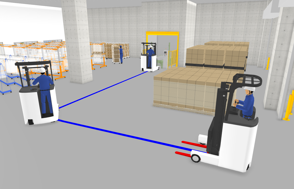 動線に沿って走るフォークリフトや旋回するロボットアーム、歩行する作業員など動作を付けた3Dパーツのアニメーション再生が可能になりました。作業の様子まで具体的に表現できるので、よりわかりやすく魅力的なプレゼンテーションがおこなえます。