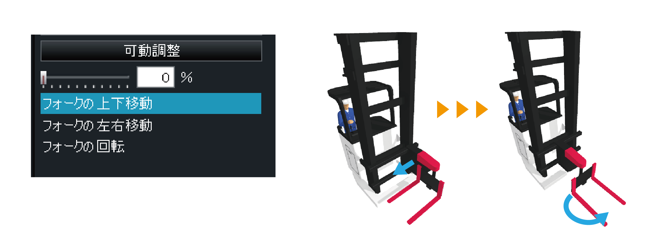 歩行する人物やリフトアップするフォークリフトなど、3Dパーツが可動対応した他、