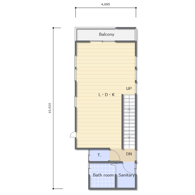 先ほどの建物より3尺(910㎜)ほど長くなるのですが、たったこれだけの差でも動線は大きく変わってきます。