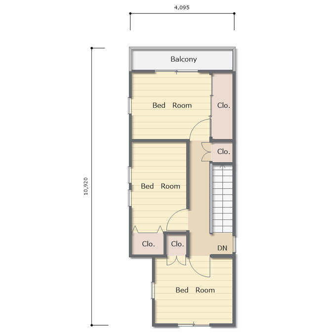 三階は三部屋となります。各部屋の収納をさらに大きくすることができました。このまま住みやすい子供部屋になります。
