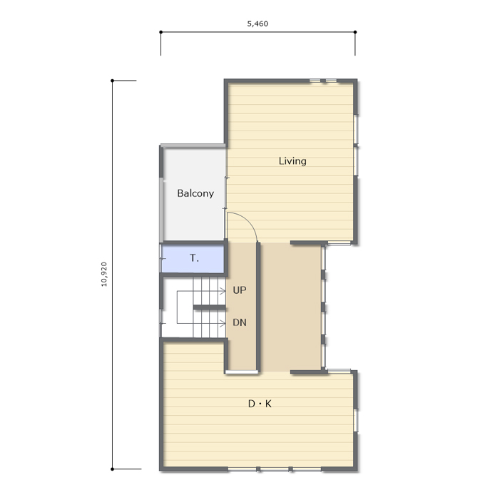 壁を取り払って小上がりのタタミコーナーにしても面白いですが、こちらでは二つに分けることで誰かの来客時でも他の家族が気兼ねなく過ごせるスペースがある作りにしています。