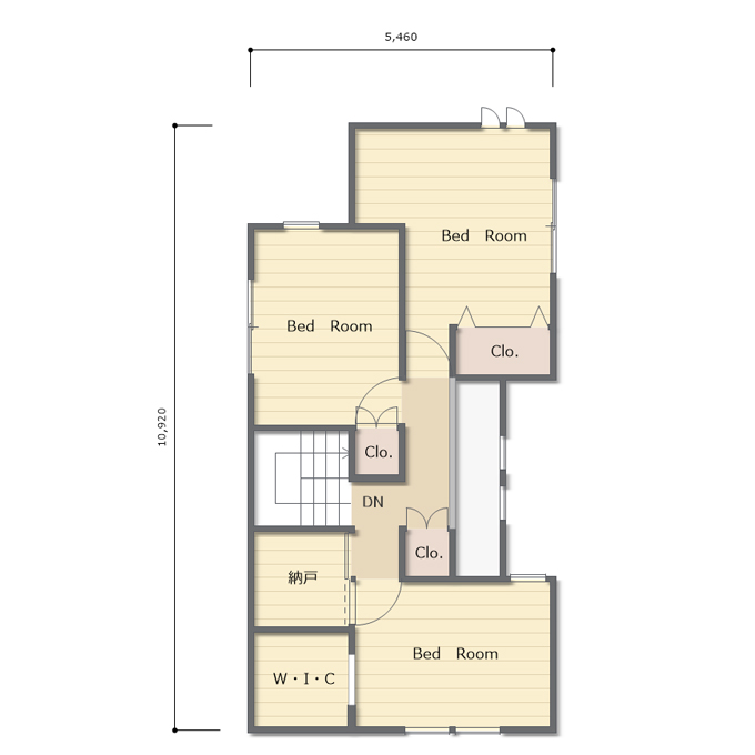三階には三部屋用意しました。どの部屋も二面以上の開口部を確保しておりどの部屋も明るく通風の良い間取りになっています。