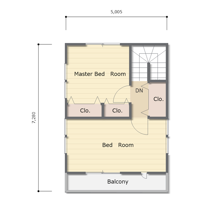 三階は二部屋、南側の子供部屋は二人仲良く成長できるような間取りにしてみました。