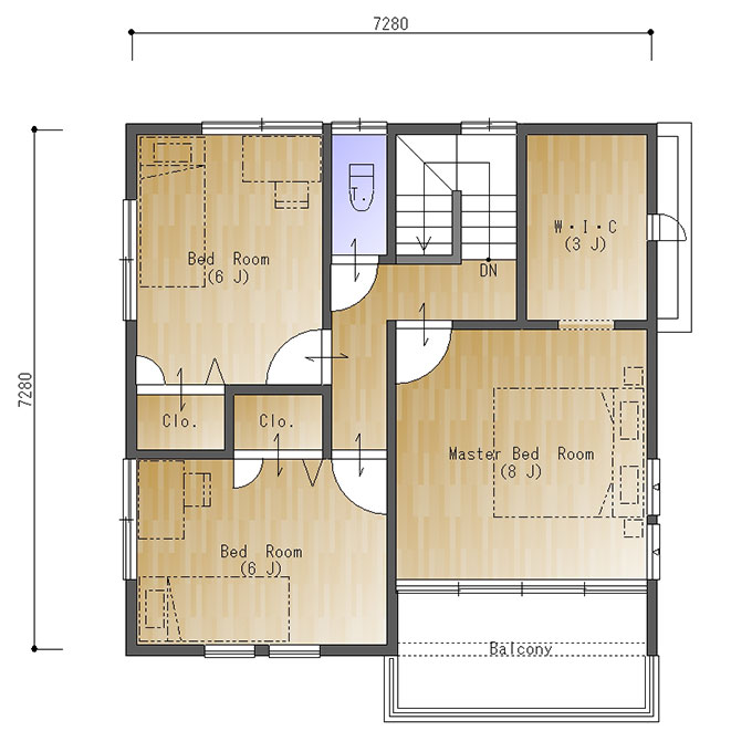 二階は6帖の子供部屋が二部屋と8帖の主寝室。