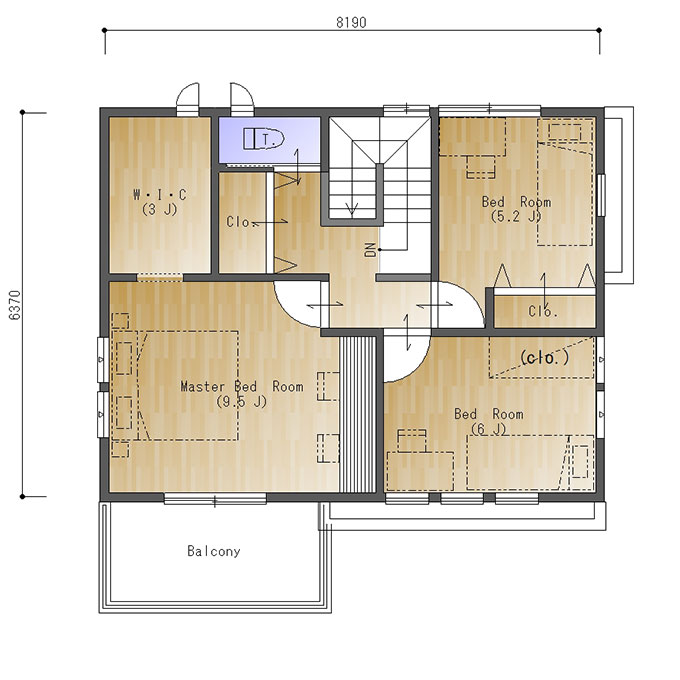 主寝室もしっかりと9.5帖あり、さらに3帖のウォークインクロゼットがついています。奥行きのあるバルコニーは、たくさんの洗濯物を干せるので洗濯もはかどりますね。