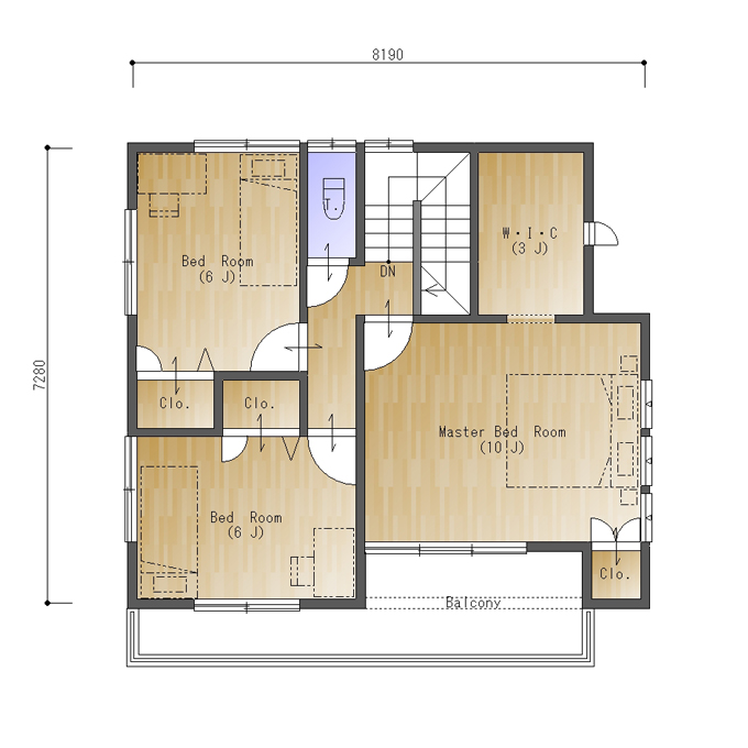 主寝室は10帖で、3帖のウォークインクロゼットもついています。奥行きのあるインナーバルコニーは、急な雨でも洗濯物が濡れる心配がないので安心ですね。