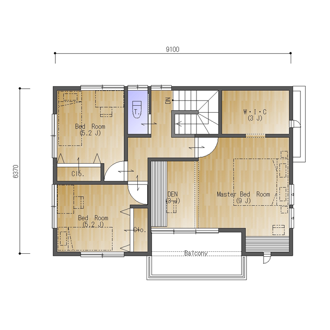 主寝室はゆったり9帖、書斎とウォークインクロゼットが3帖ずつあります。主寝室の南側にはカウンターもあり、メイクスペースなどにも重宝しそうです。