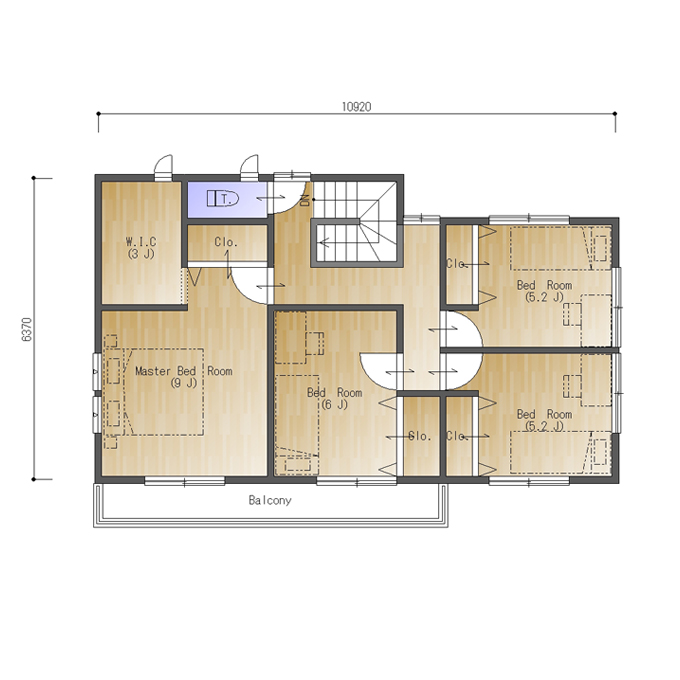 主寝室は9帖、3帖のウォークインクロゼットと1帖の計4帖分になる収納がついています。用途によって収納するものをわかるとよいかもしれませんね。