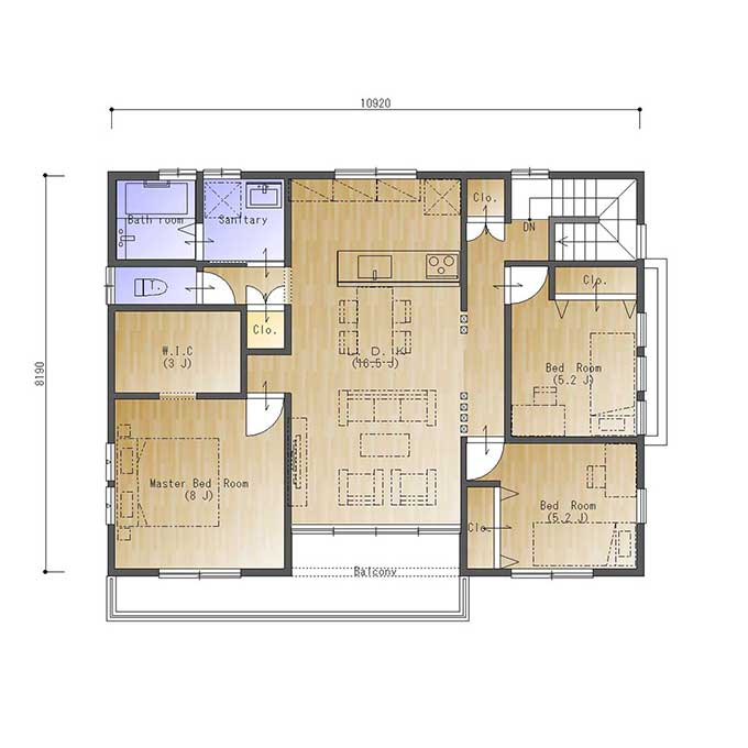 主寝室は8帖、ウォークインクロゼットも3帖と大きな収納量を確保しています。