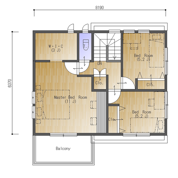 二階は11帖の主寝室と5.2帖の寝室が二部屋です。