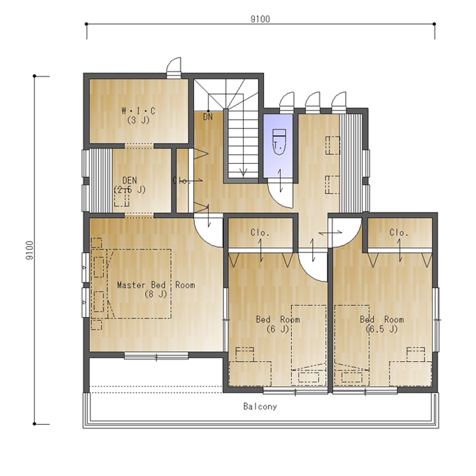 その奥には3帖のウォークインクロゼットがあり収納も十分とれた間取りとなっています。