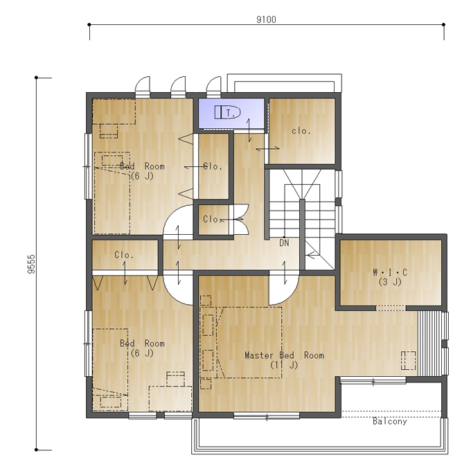 2階は3部屋。子供部屋はそれぞれ6帖。クロゼットがついており、お部屋を広く使うことができます。