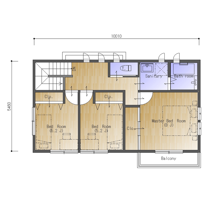 東西の間口5.5間(10010㎜)、南北の奥行が3.0間(5460㎜)の北玄関の参考プランです。