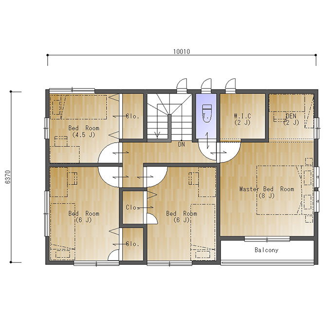 2階は、主寝室のほかに、子供部屋として使えるお部屋が3部屋。家族が多いと2階にもトイレがあるのは嬉しいポイントです。
