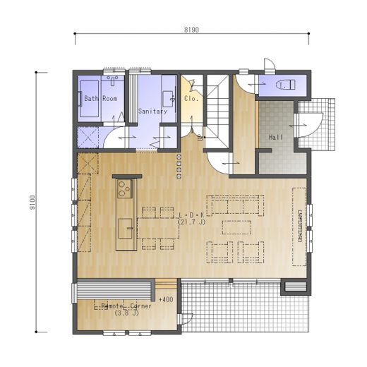 【間取り・注文住宅プラン】カーポートと大きなデッキのある3LDKのプラン