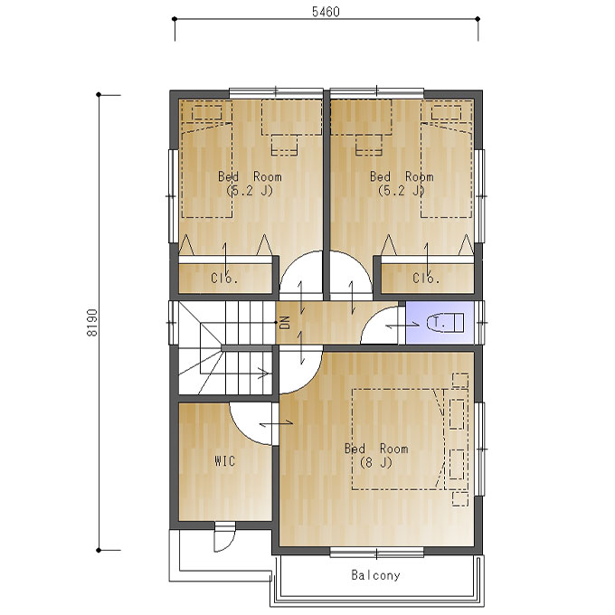 二階は三部屋。北側の子供室はそれぞれクローゼットがついた角部屋。均等な部屋割りなのでどちらの部屋をとるかでケンカになりませんね。お子さんが小さいうちは間仕切りをなくして一部屋でも。