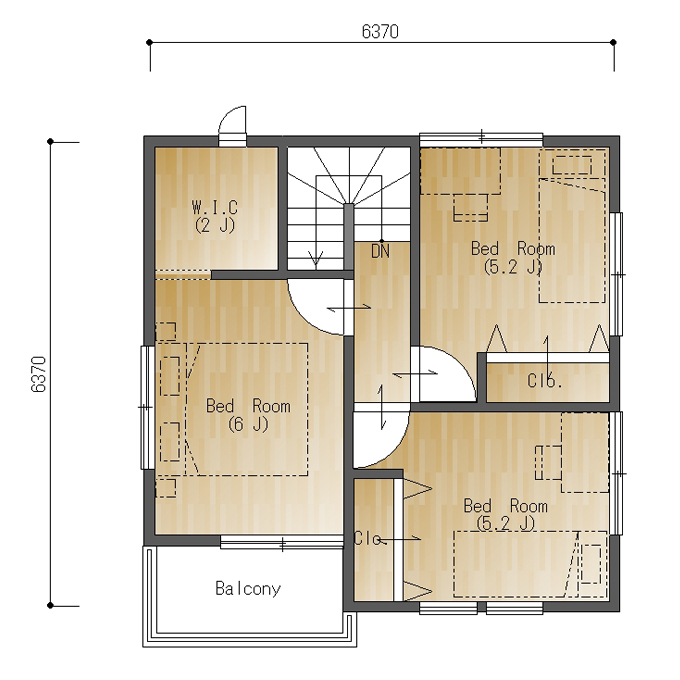 二階は最小限に廊下を抑えていますので各部屋がしっかり床面積がとれています。