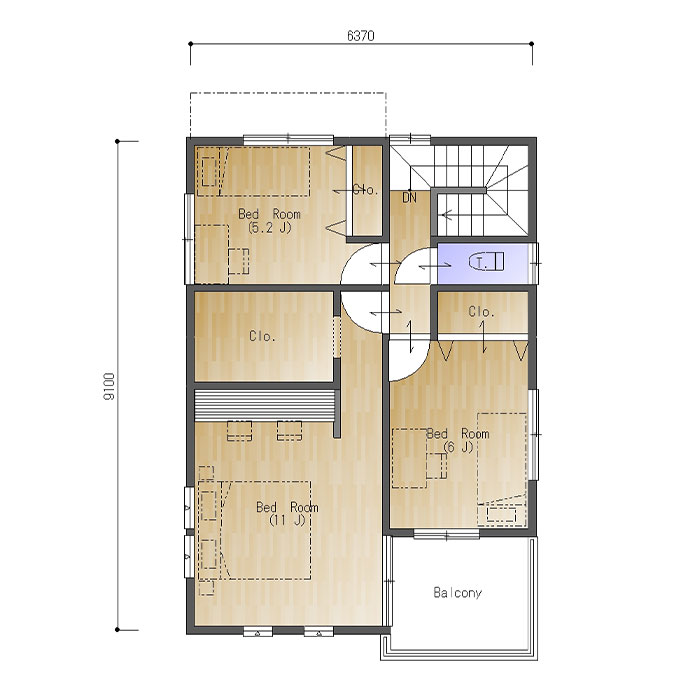 二階はスペースを無駄なく活かよう、効率的にお部屋が配置されていますね。