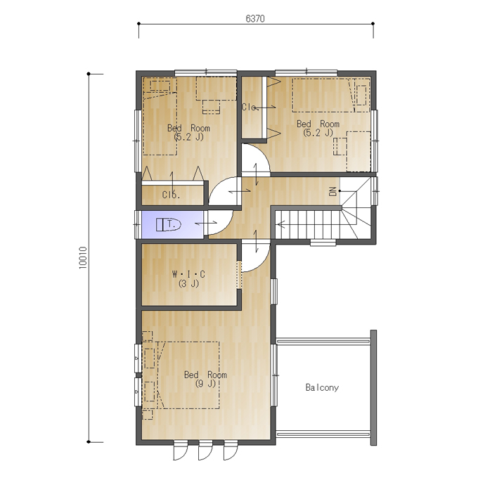 二階もスペースを無駄なく活かすよう、効率的にお部屋が配置されています。