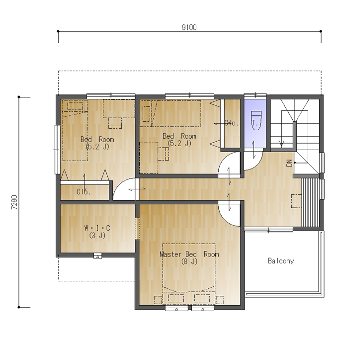 また、二階北側を半間さげて斜線規制を避ける想定をしています。ご参考まで。