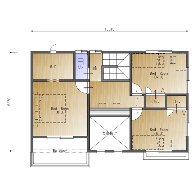 主寝室は3帖のウォークインクロゼットがあるほか、夫婦で楽しめる奥行きの深いバルコニーを用意しました。開放感たっぷりの主寝室です。