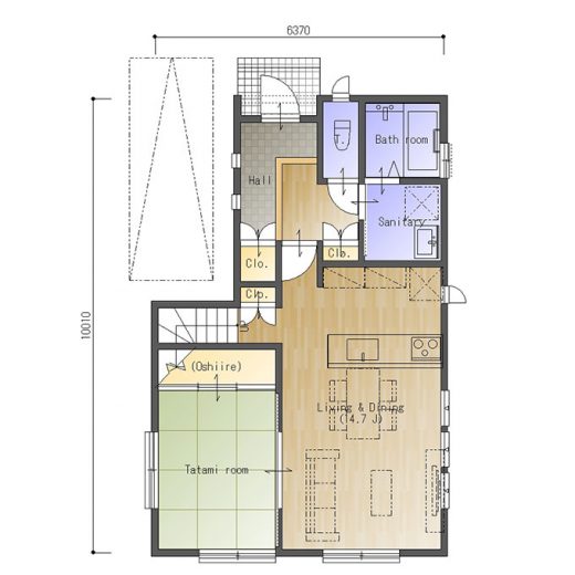 【間取り・注文住宅プラン】南北に長い敷地にリビングと和室を設けた、4SLDKの充実した間取り