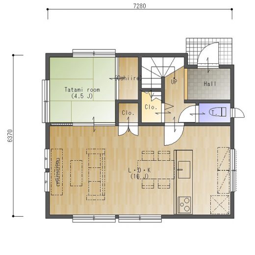 【間取り・注文住宅プラン】リビングを和室と隣り合わせて広く使えるように工夫した、4LDKの間取り