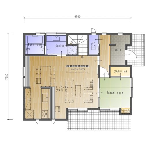 【間取り・注文住宅プラン】リビング続きの和室と、吹き抜けのあるリビングが魅力的な4LDKの間取り