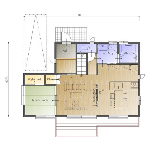 【間取り・注文住宅プラン】リビング続きの和室と、デッキのある4LDKの間取り