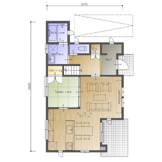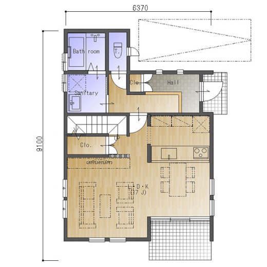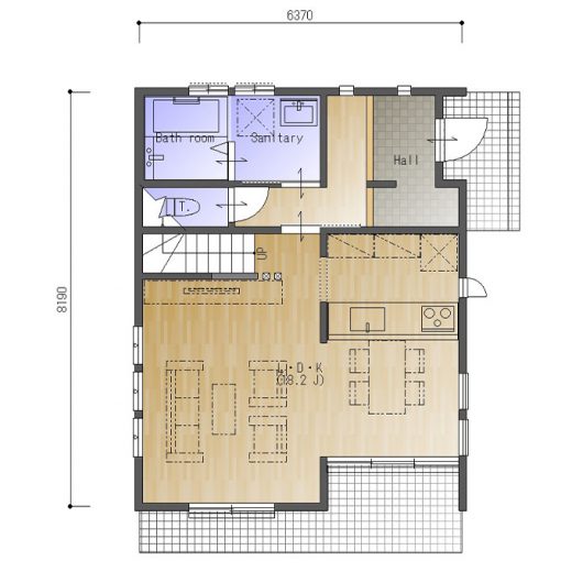 【間取り・注文住宅プラン】一階の南側にデッキのある3LDKの間取り