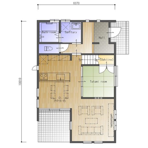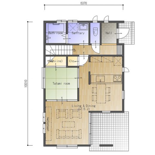 【間取り・注文住宅プラン】キッチンの近くに和室を配置した、4LDKの間取り