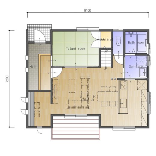 【間取り・注文住宅プラン】リビングとつながった和室とデッキのある4LDKの間取り