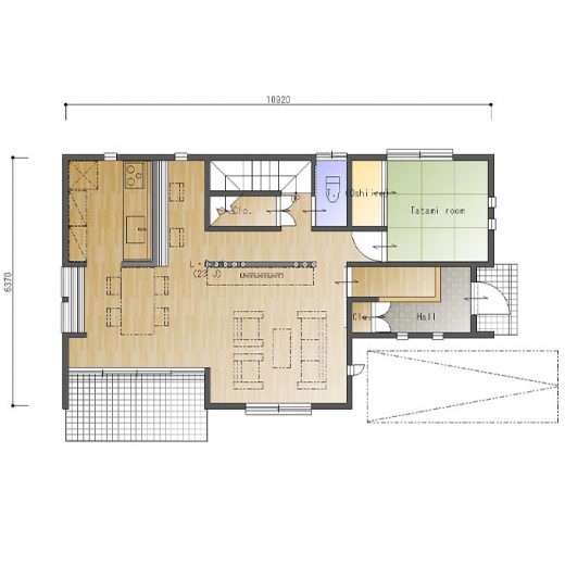 【間取り・注文住宅プラン】カーポートと和室と繋がった広いリビングのある3LDKの間取り