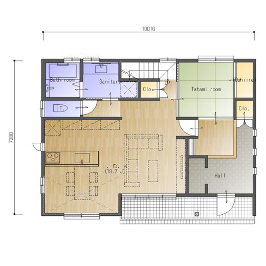 【間取り・注文住宅プラン】大きな土間と吹き抜けのある和風の建物の間取り