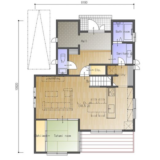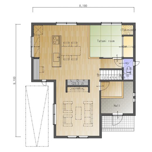 【間取り・注文住宅プラン】玄関ポーチをゆったりとった、カーポート付きの4LDKの間取り