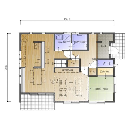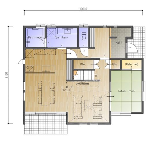 【間取り・注文住宅プラン】東西に細長い、和室を備えた4LDKの間取り