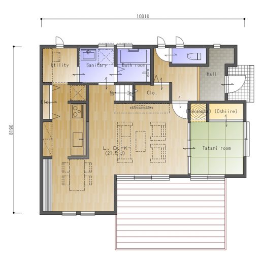 【間取り・注文住宅プラン】リビング前の広いデッキとセカンドリビングが楽しい4LDKの間取り