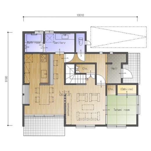 【間取り・注文住宅プラン】小上がりのリモートコーナーがある二階水回りの4LDKの間取り