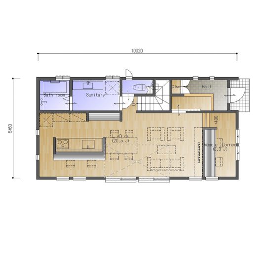 【間取り・注文住宅プラン】吹き抜けとリモートコーナーのある3LDKの間取り