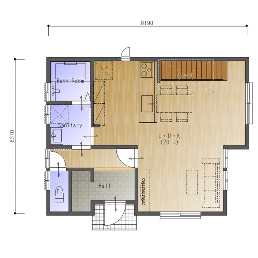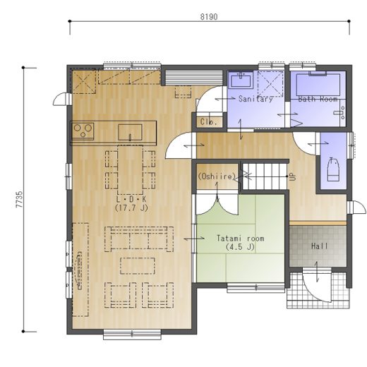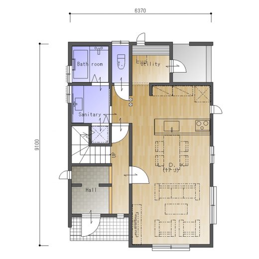 【間取り・注文住宅プラン】南玄関の回遊動線のある間取り